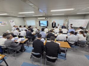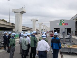 令和7年10月10日(金)、大阪モノレール株式会社様のご協力により「2025年 大阪モノレール延伸事業(PC軌道桁製作)現場視察会」を開催し、当協会の会員40名が参加しました。