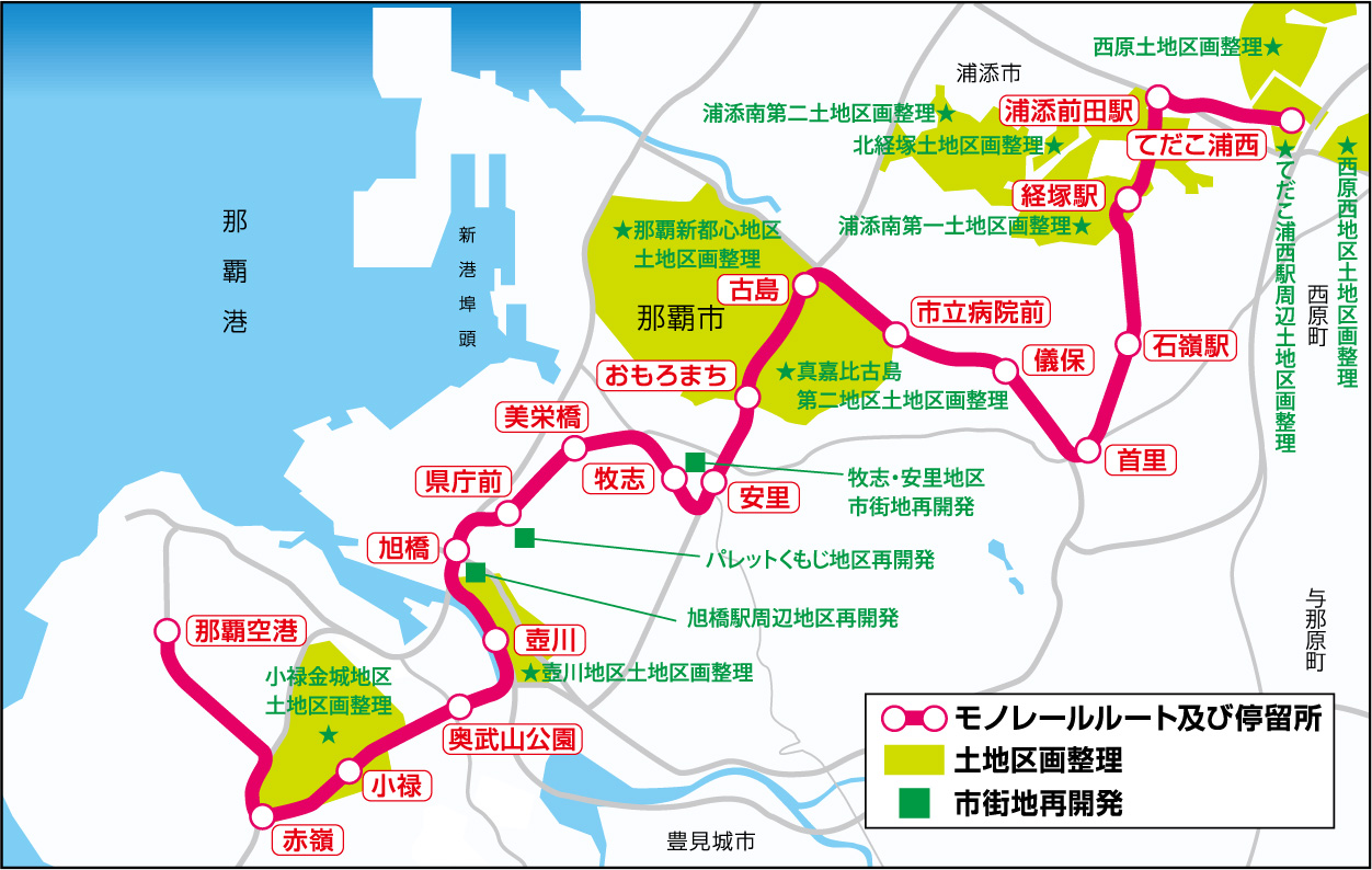 モノレールの整備にあわせ、都市交通手段の再編、沿線開発による住宅地や商業・業務・文化・福祉施設等の整備、都市の再整備による居住地や都市機能の再構築等を図ることにより、住民の生活利便性の向上や地域経済の活性化等の様々な都市問題の解決を図ることが可能です。